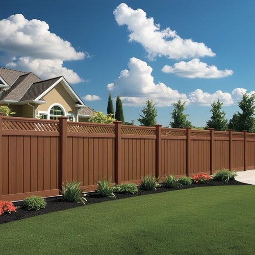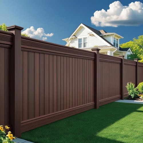 Brown vinyl fence in a nice backyard in Camas Wa.